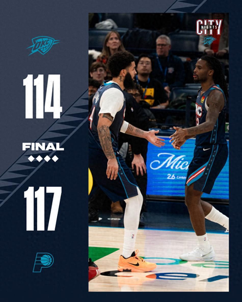 北京時間1月24日,NBA常規賽爆出超大冷門,聯盟第一的雷霆隊114-117不敵聯盟 倒數第一的步行者隊,這場比賽誰也想不到雷霆會一敗塗地,首節開場OKC就落後11分之多,上半場雷霆最多落後到17分,雷霆一直被聯盟倒一的步行者壓制到最後,SGA無論怎麼拿分都無法逆轉。