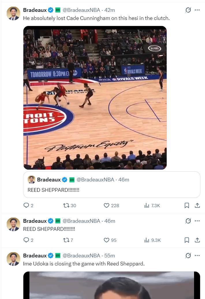 火箭記者還感謝烏度卡給了謝潑德在末節決勝時刻的機會,謝潑德與杜蘭特的這個擋拆攻框非常精彩,謝潑德是有閱讀比賽能力的球員。