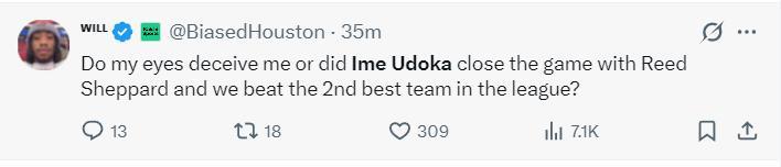 休媒:烏度卡讓謝潑德在比賽最後時刻登場了!然後我們擊敗了聯盟排名第二的球隊!