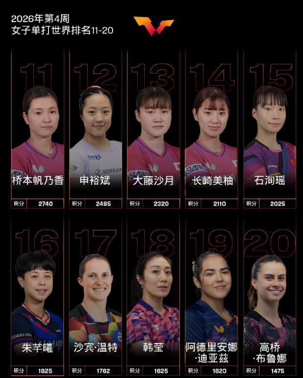 石洵瑤拿下馬斯喀特站的女單冠軍後她會有400積分,算上本週結算的WTT常規挑戰賽馬斯喀特站2026、WTT多哈青少常規賽、多哈青少球星賽2026積分,她的世界排名將重返第13位。