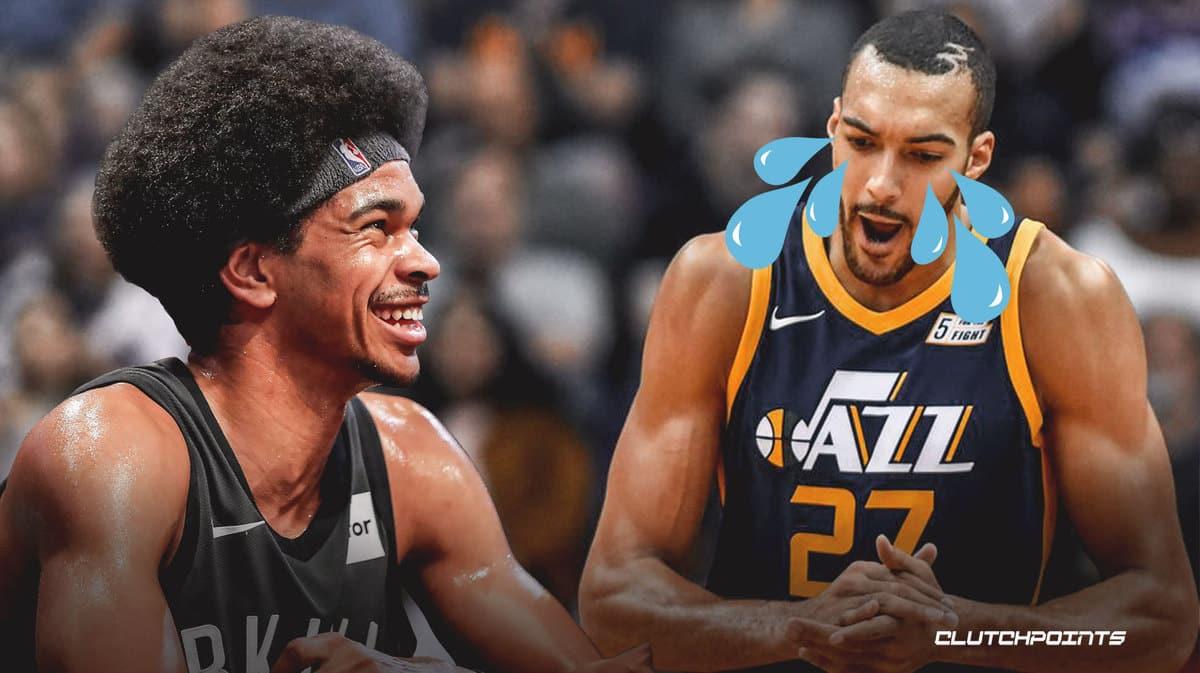 作爲對比,戈貝爾場均則能拿到13.6分,12.6籃板,1.4蓋帽,命中率63.7%。