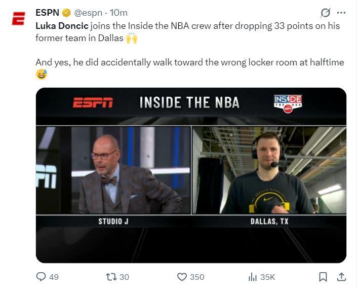 賽後ESPN專訪東契奇,東契奇在採訪中談到:我記得我被交易後第一次來到這裏打球想回更衣室,結果忘記客隊更衣室在球場另一頭。今天中場時我又迷糊了,我差點走錯了球員通道進獨行俠更衣室,又搞混了。