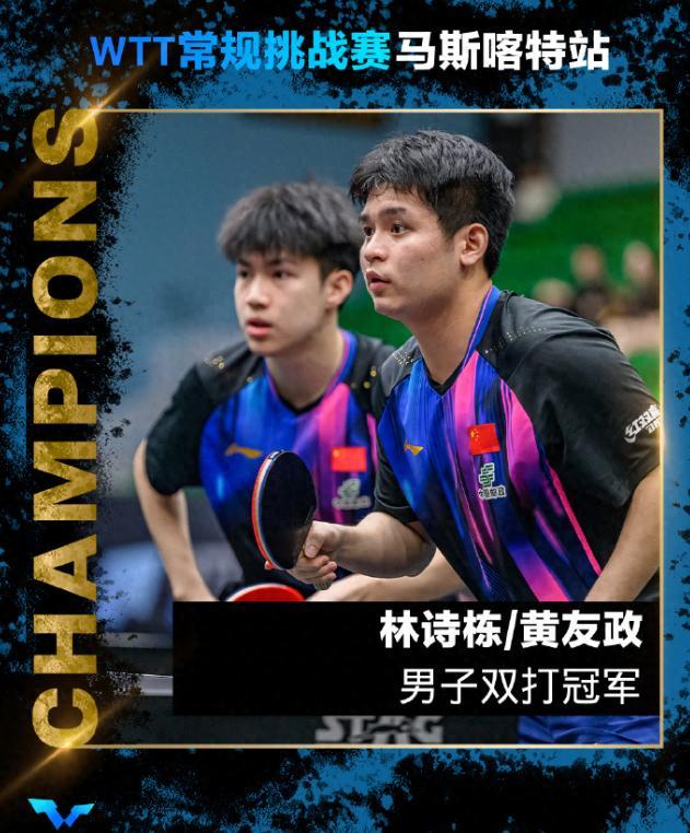 北京時間1月24日晚,WTT馬斯喀特站常規挑戰賽男雙決賽,黃友政/林詩棟3-1弗朗西斯卡/杜達登頂,四局比分:【11-6,11-6,11-13,11-5】。林詩棟作爲國乒的二號人物終於在開年的第三站拿到了自己的第一個冠軍,而20歲的小將黃友政也拿到了開年第二站的第一個冠軍。