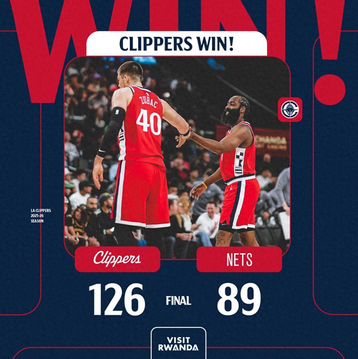 北京時間1月26日,NBA常規賽,快船126-89大勝籃網拿到二連勝。這場比賽是一節花,首節快船38-14淨勝25分之多,此後的比賽快船就牢牢掌控大局,最終快船迎來了一場酣暢淋漓的大勝。