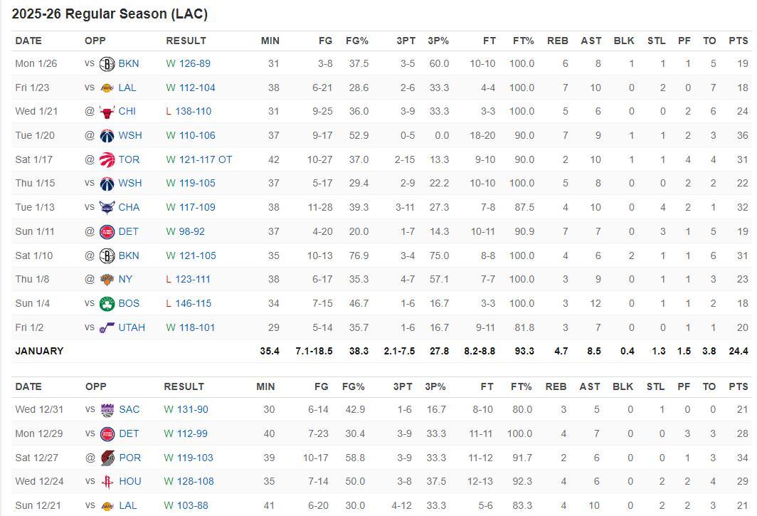 快船狂勝籃網後最近的18場比賽贏下了其中15場,這場勝利後快船21勝24負,快船距離50%的勝率只差3場,哈登僅打了三節就打卡下班拿到19+8+6+1+1的全面數據,但問題還是效率不佳,命中率僅37.5%,正負值+22。