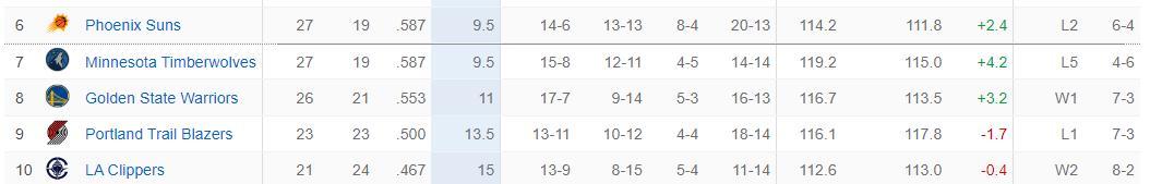 快船目前21勝24負,太陽27勝19負,快船距離西部第六也只有4.5個勝場,感覺快船本賽季依舊有希望去衝擊西部前六,勇士、開拓者、森林狼等球隊被快船反超感覺只是時間問題。