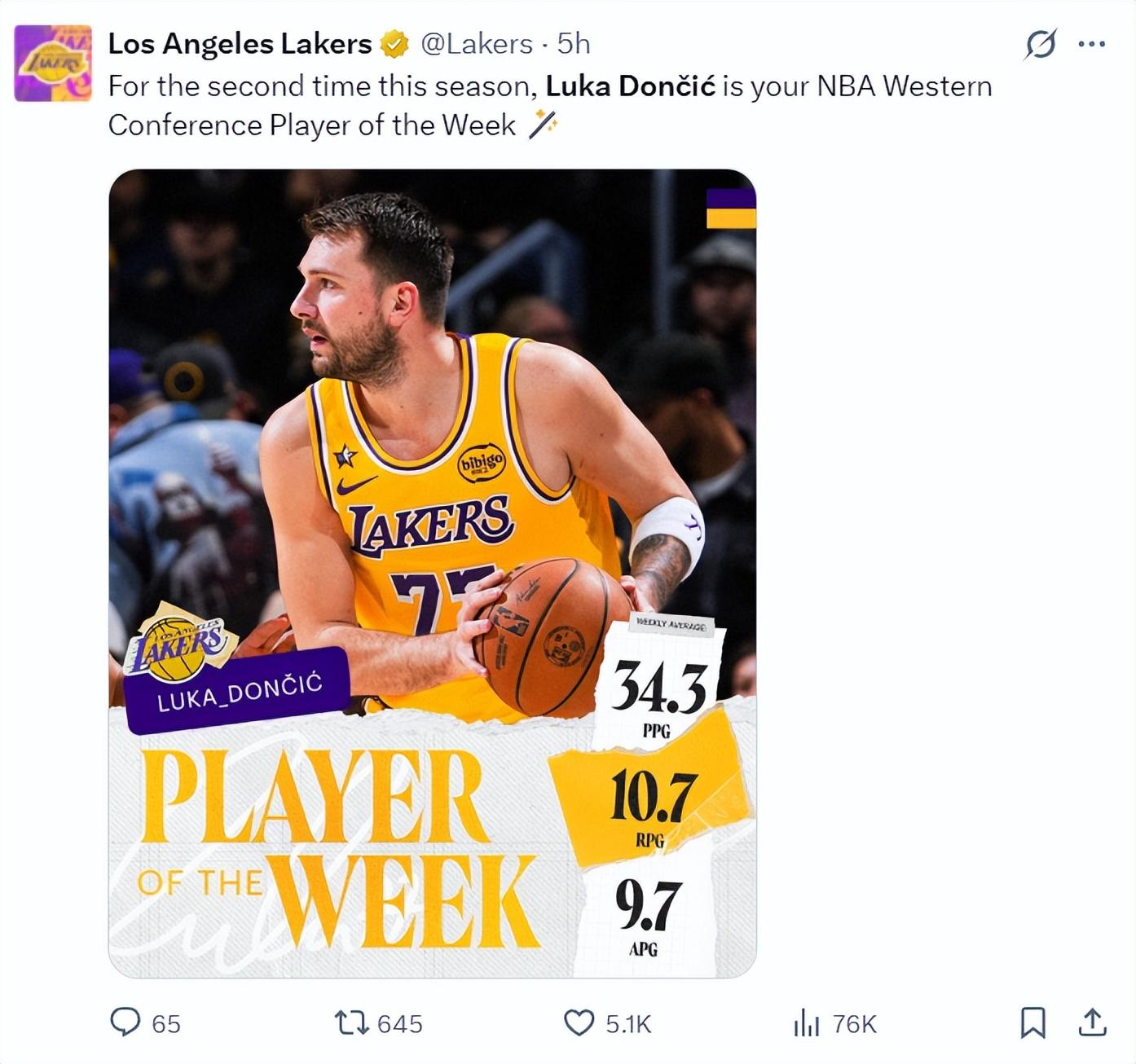 北京時間1月27日,盧卡-東契奇再度迎來里程碑,他65場比賽已經拿到2000分成爲湖人隊史最快的2000分先生。而且這場比賽東契奇第三節單節20分幫助湖人頂住了公牛的反撲,全場比賽拿到46+11+7+8三分的數據幫助湖人拿下勝利。