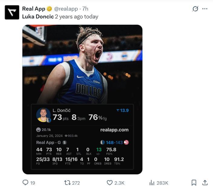 這場比賽也是東契奇的紀錄之夜,兩年前的今天東契奇對陣老鷹一戰拿到73分10籃板7助攻1搶斷,那是他拿到生涯最高分的一天。