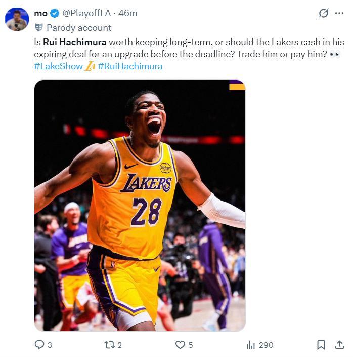 湖人媒體:此役打完後大家覺得八村是否值得球隊長期留用?還是說湖人該在交易截止日前利用他的合同進行交易換取更好的球員?還是繼續留着跟他續約?