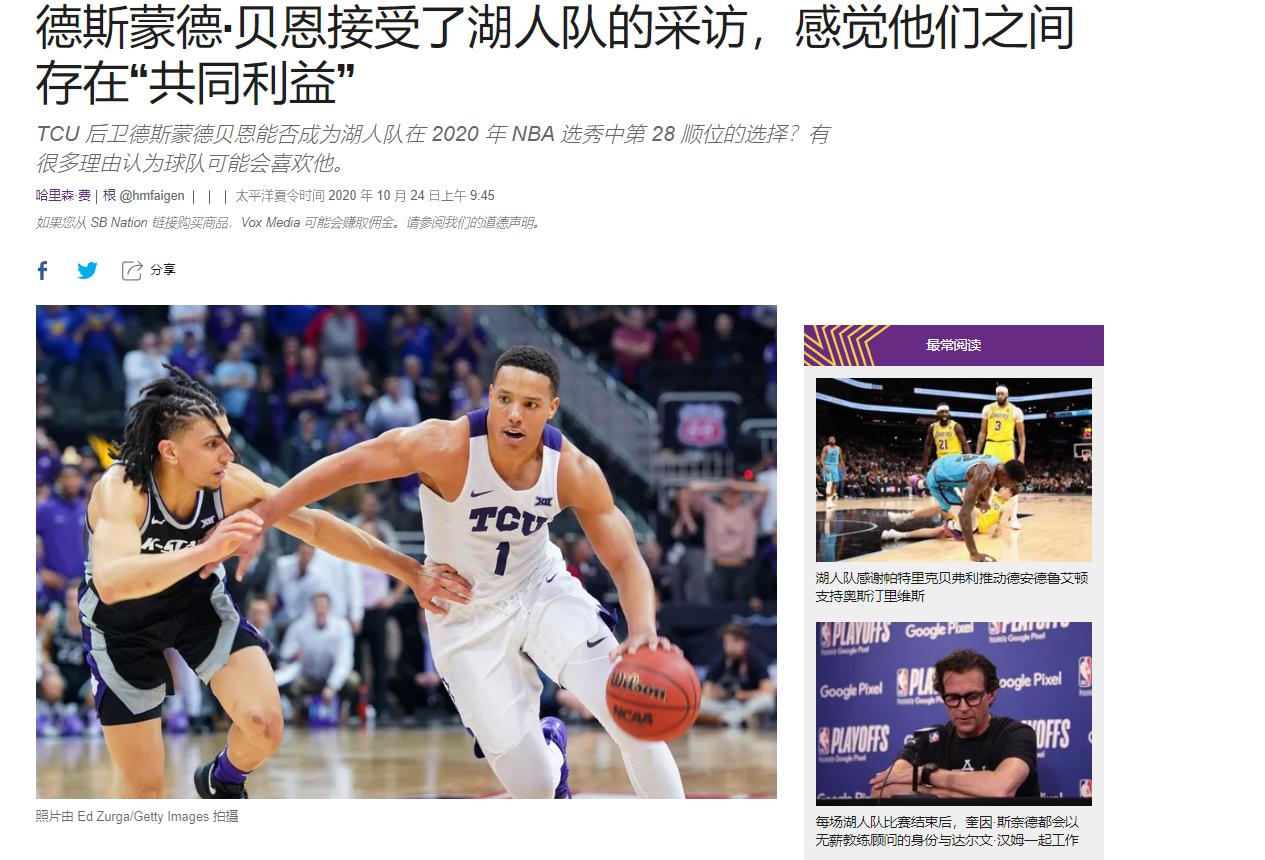 再看看這則選秀前的報道,對湖人真是諷刺啊...