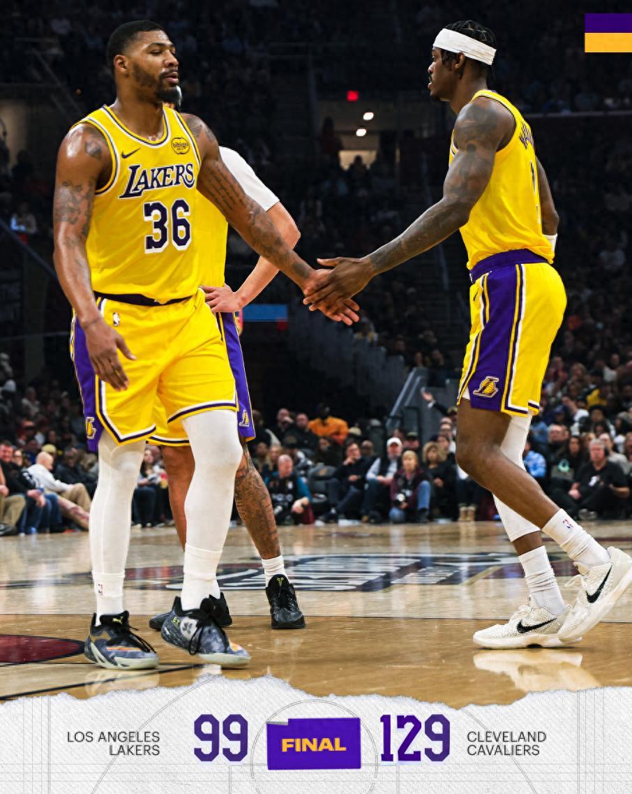 北京時間1月29日,湖人99-129慘敗騎士。湖三崩雖遲但到,原本湖人在第三節開局只落後2分,短短2分鐘被打了一波9-0落後到11分,之後湖人就是三軍潰散、丟盔棄甲,第三節單節淨負20分,末節還剩8分鐘雷迪克提前投子認負吞下一場慘烈的失利。