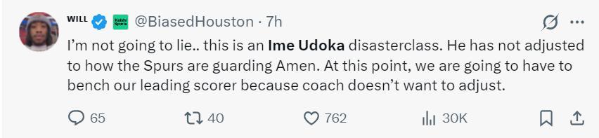 緊接着他繼續開炮:我不會瞎說,這場比賽就是烏度卡災難執教的一場,他沒有做好馬刺對阿門針對性防守的措施,我們不得不讓頭號得分手下場休息,因爲教練不想做出任何的調整。