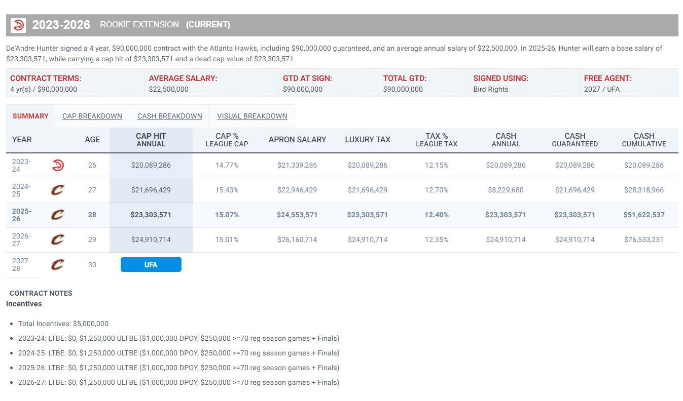 亨特還餘下兩年4800萬的合同,身高2.03米,年齡29歲,本賽季場均13.5分4.1籃板2.2助攻0.61搶斷0.16蓋帽,命中率41.7%,三分命中率30.7%,他在騎士的定位是鋒衛搖擺人,雖然他本賽季效率不佳但他卻是湖人最急需的三號位。