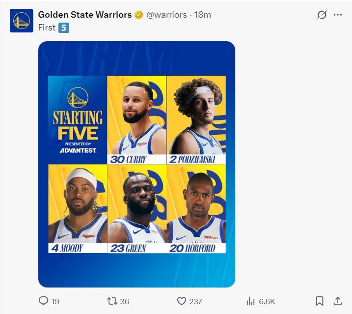 勇士:庫裏、波傑姆斯基、穆迪、追夢、霍福德;