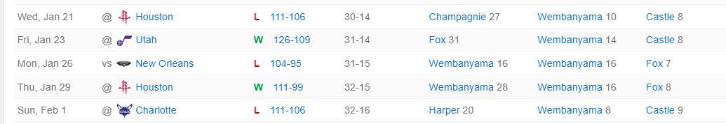 馬刺過去的五場比賽已經輸掉三場,就連爵士、黃蜂都能輸,文班亞馬的穩定性出現了巨大的問題。