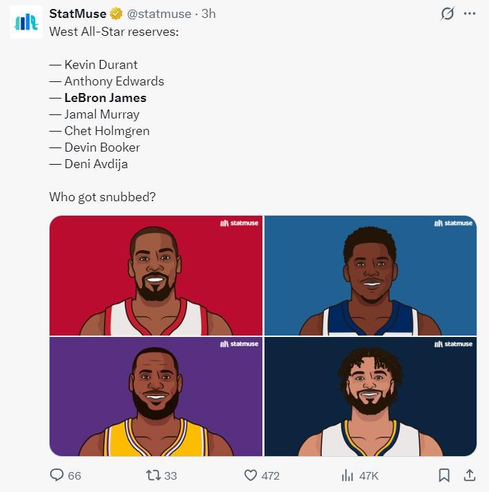 這場比賽之前,NBA官方宣佈了西部全明星替補:杜蘭特、華子、詹姆斯、穆雷、霍姆格倫、布克、阿夫迪亞。換言之勒布朗-詹姆斯連續22年入選全明星。