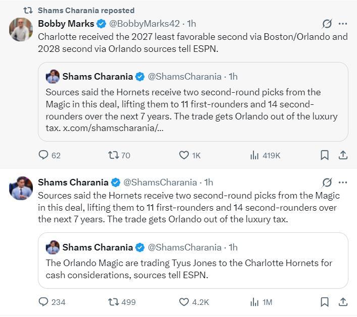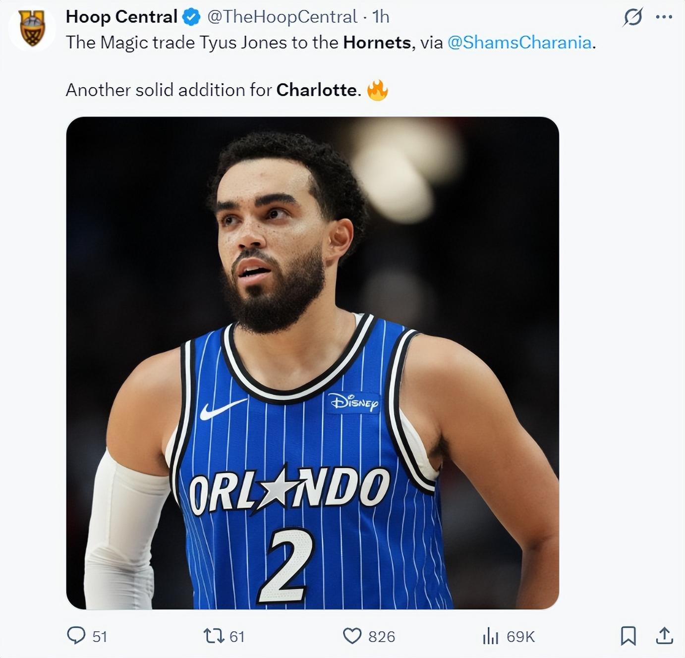 緊接着黃蜂與魔術達成交易,黃蜂接手了泰厄斯-瓊斯700萬的合同,魔術則送出了兩個次輪籤,此舉魔術隊見面了奢侈稅。