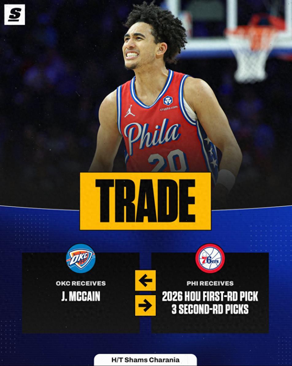 雷霆、費城達成一筆交易,雷霆送出1個首輪籤、3個次輪籤從費城換到了賈裏德-麥凱恩。這筆交易達成後很多雷霆球迷發了多個問號,更有雷蜜對普雷蒂斯進行了炮轟,認爲麥凱恩這個遭遇過大傷的小後衛最多隻值得1個首輪籤。