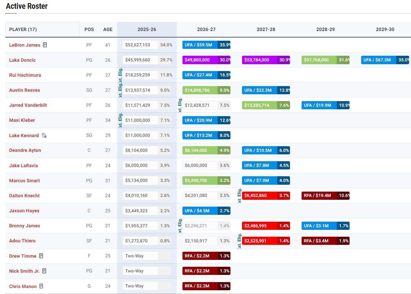 聯盟的買斷名單也開始充盈起來,爵士剛剛裁掉了朗佐-鮑爾、克里斯-布歇,籃網也裁掉了托馬斯,黃蜂也裁掉了邁克-康利。國王也正準備買斷德羅讚的到期合同,湖人隊這份14+3名單可以放眼買斷市場。