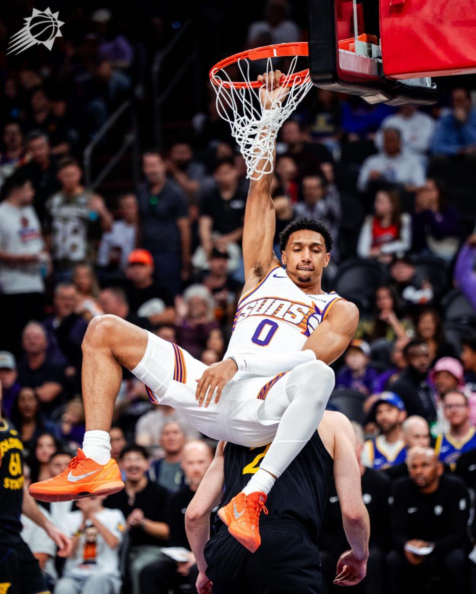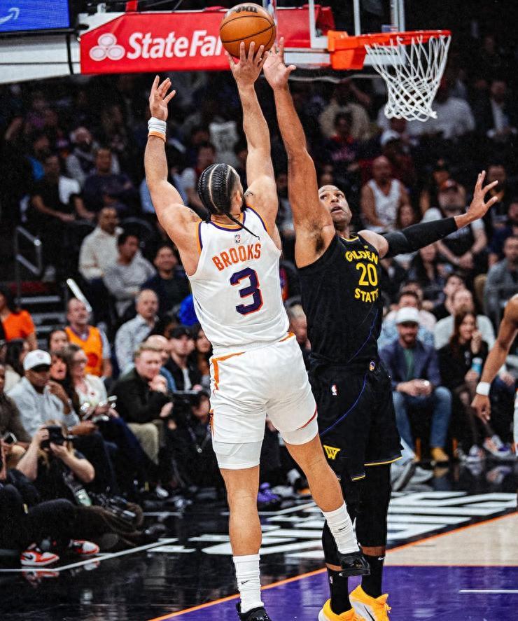 易邊再戰太陽最大的改變就是防守,他們終於不給勇士輕鬆的外線三分機會了,進攻端開始將球不斷打到內線,太陽開始用優勢打勇士的劣勢了,太陽一波流完成反超。斯潘塞命中第六個三分球爲勇士縮小分差,吉萊斯皮立馬回應三分,梅爾頓失誤一個,古德溫三分不中,梅爾頓造犯規兩罰全中,三節打完太陽82-76領先勇士。