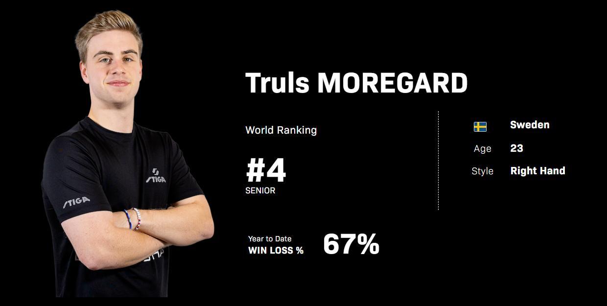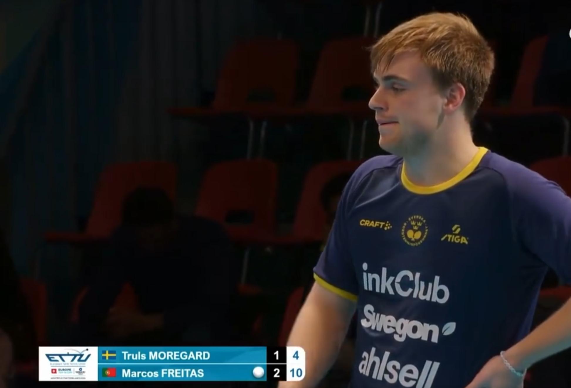 23歲的瑞典選手莫雷加德世界排名第四,他還是巴黎奧運會男單亞軍,世乒賽男單亞軍,他不管是世界排名還是年齡方面都比弗雷塔斯高數個檔次,但他在面對37歲的老將時只能被迫捱打。
