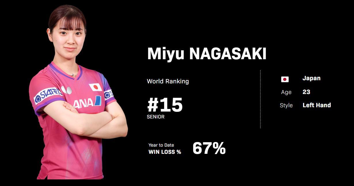 長崎美柚的世界排名僅僅第15,但在本屆亞洲盃上她成爲了一匹大黑馬,她在循環賽上不僅僅拿到了一波三連勝,她還3-1爆冷擊敗了世界排名第六的國乒選手王藝迪。