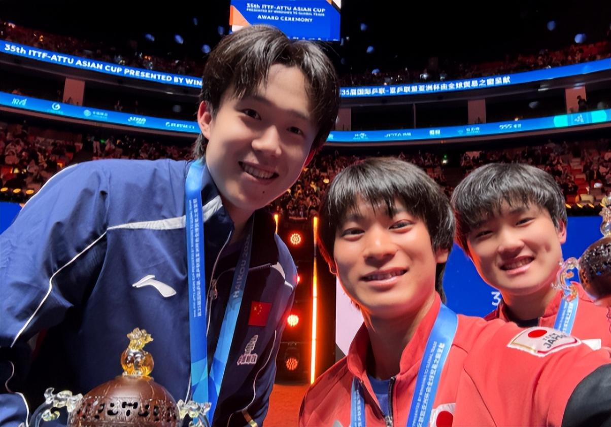 不過在頒獎典禮後,張本智和與戶上隼輔的合影還是露出了笑容,這時候張本智和已經戴上了明晃晃的銀牌。日本隊在本屆亞洲盃上拿到了男單項目的兩塊獎牌,女單項目日本隊0個獎牌,看起來張本智和還是滿意的。