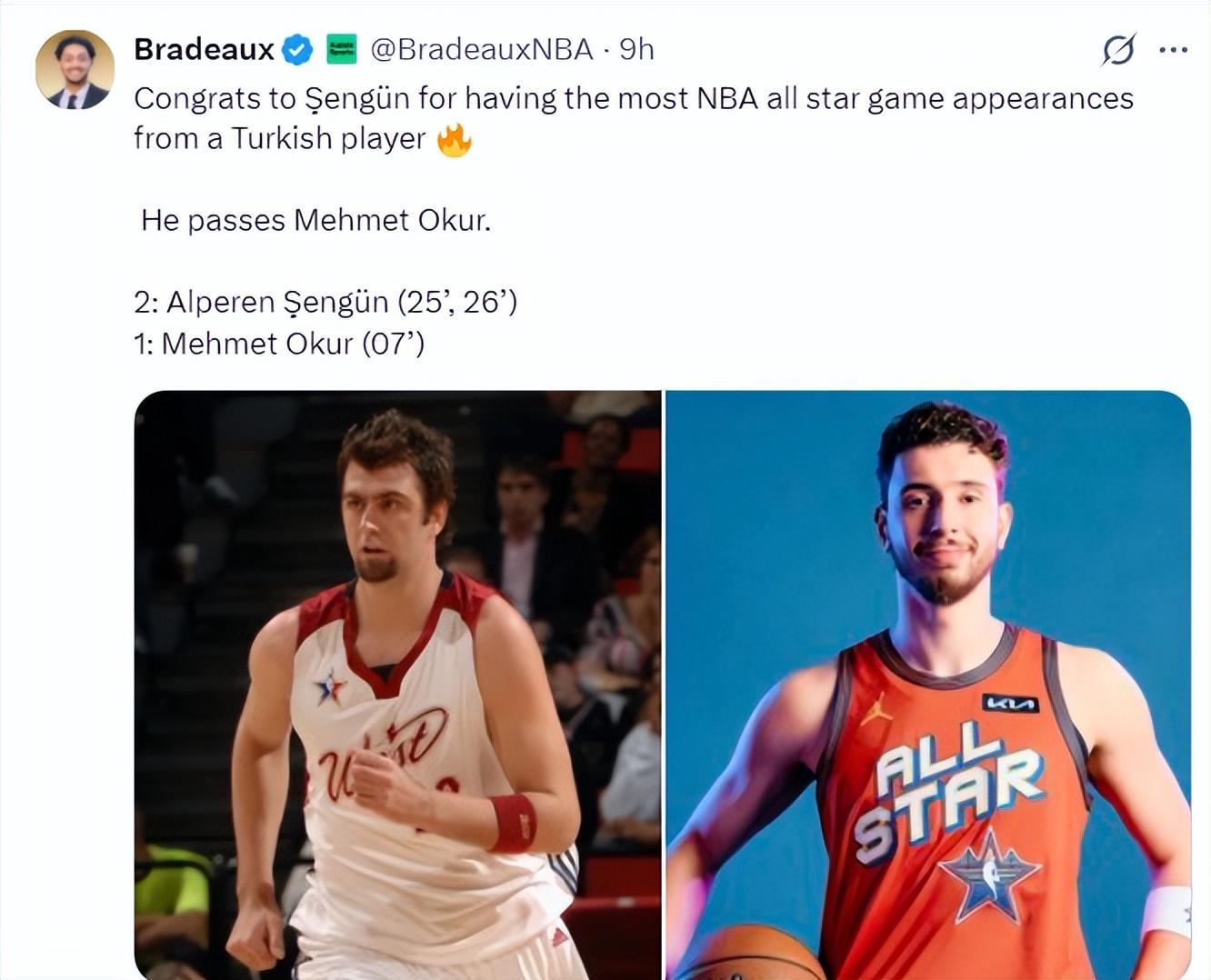 7.申京將繼續刷新土耳其球員在全明星登場時間紀錄,奧庫僅7分鐘;