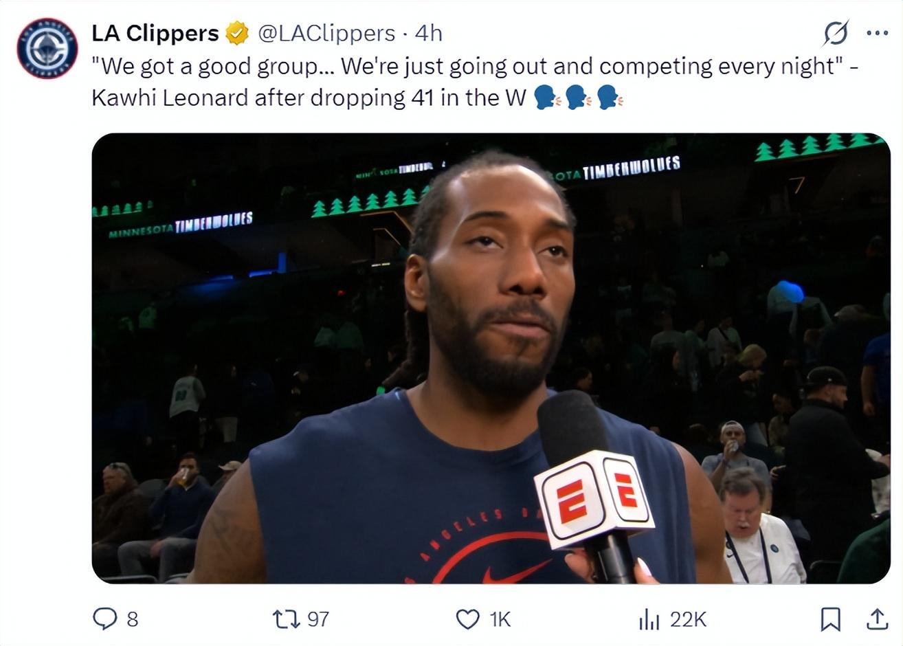 賽後倫納德接受採訪,他說道:我們是一支出色的球隊,我們每一晚都爲了勝利全力以赴去拼搏競爭,我們有一個目標。