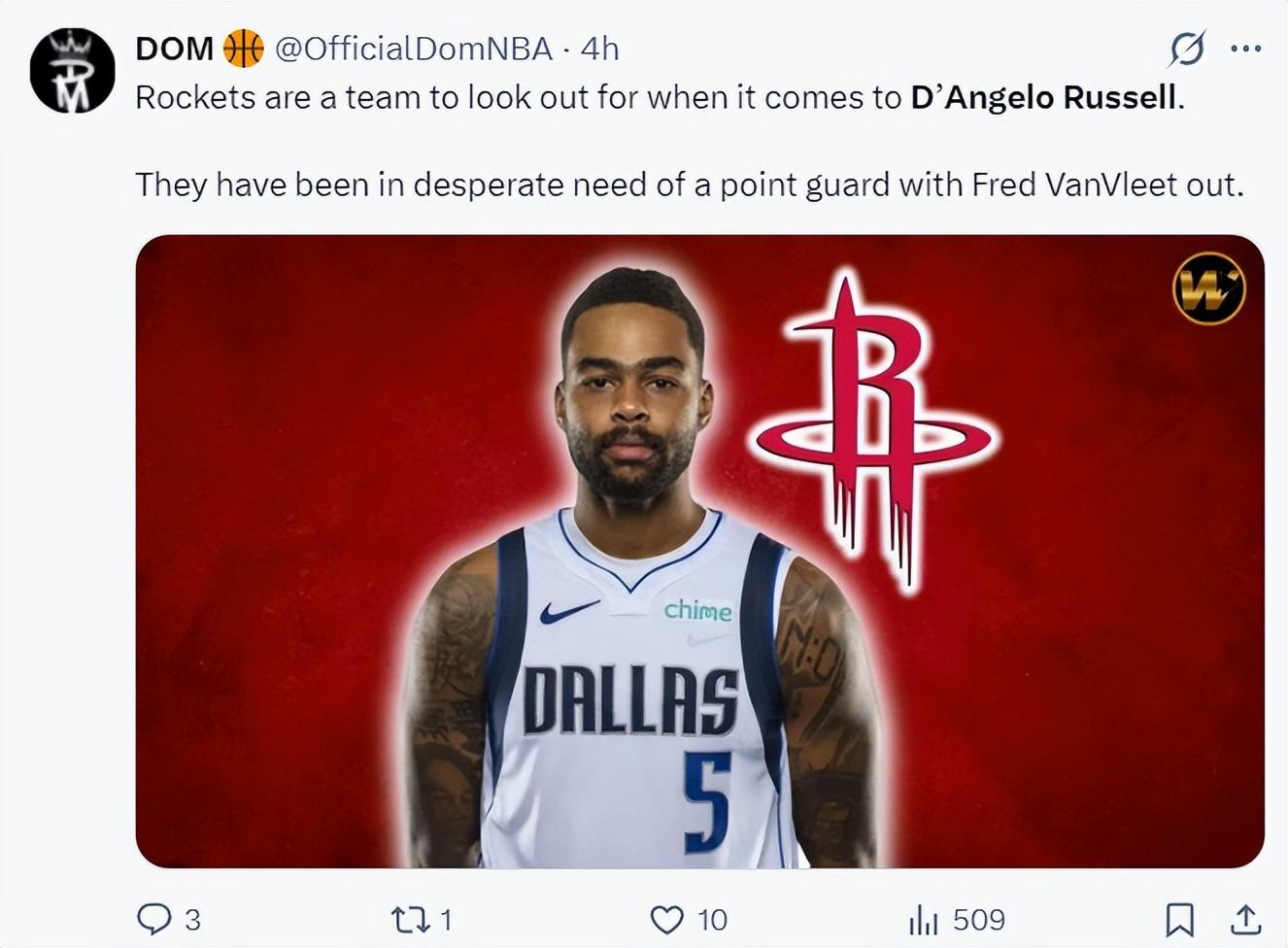 根據美媒Dom的報道,當談到丹吉洛-拉塞爾這位球員時,火箭隊是他值得關注的下家,由於範弗利特的傷病(大概率賽季報銷),火箭迫切需要一位控球后衛。