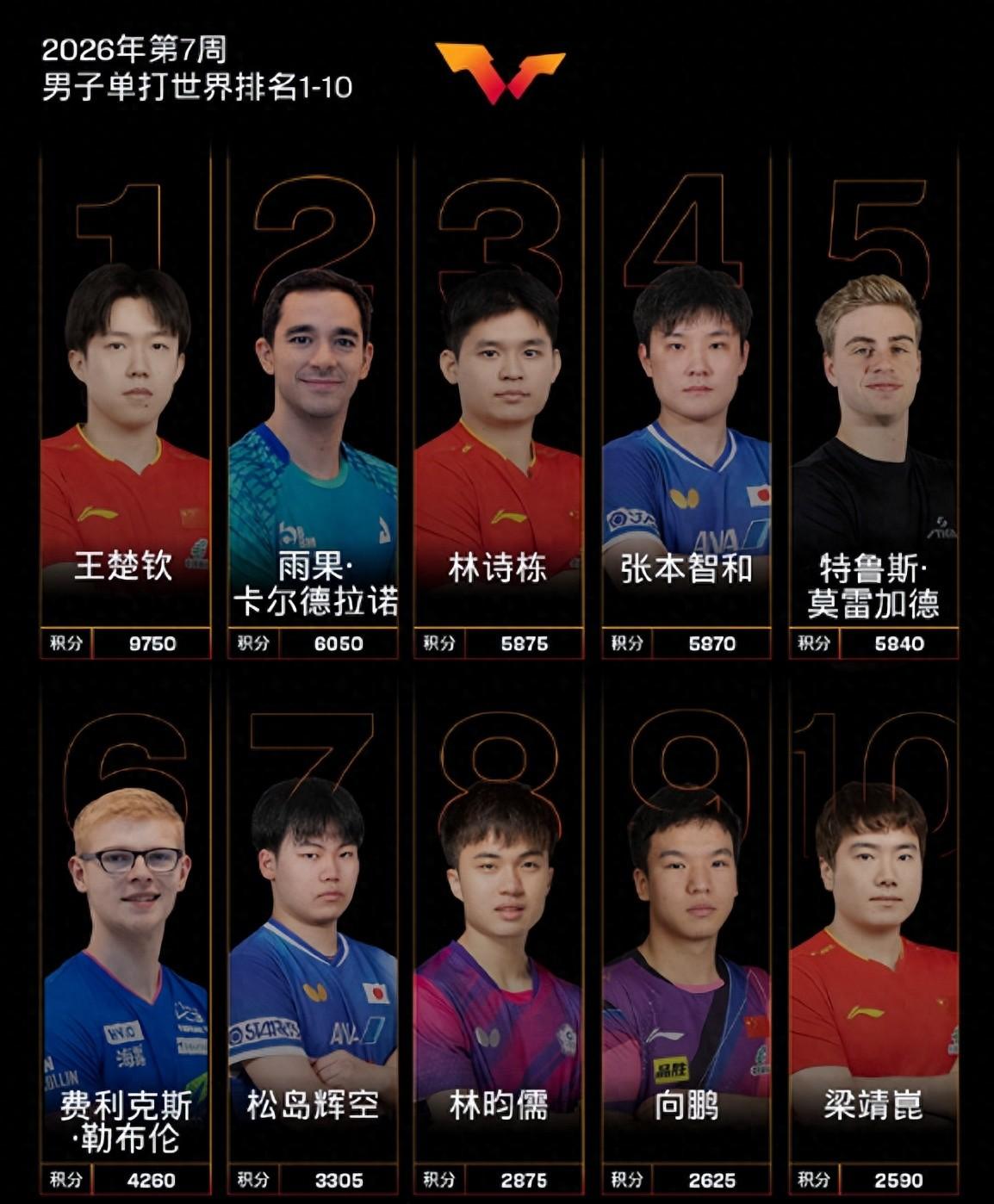 國乒另一個主力梁靖崑更是跌至世界第十,2026賽季梁靖崑的表現非常差,WTT馬斯喀特常規挑戰賽32強、WTT多哈球星挑戰賽32強、WTT多哈冠軍賽8強,梁靖崑因爲腰傷競技狀態下滑太多。