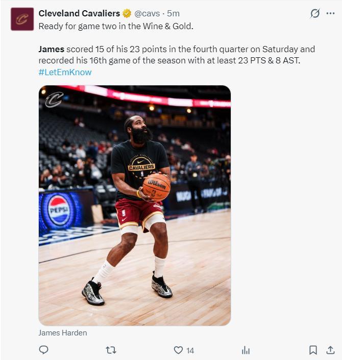 騎士:米切爾32分10助攻,哈登22分10籃板8助攻,阿倫22分13籃板,泰森16分,梅里爾9分。