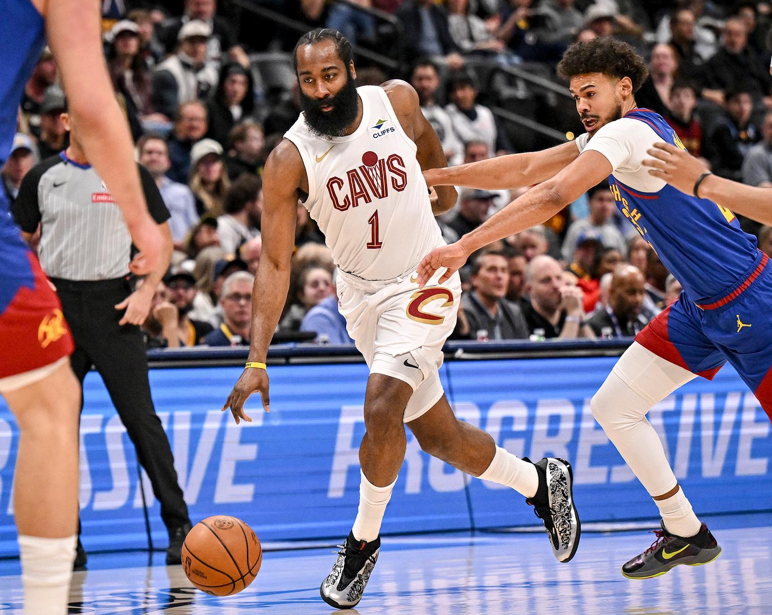 北京時間2月10日,NBA常規賽,騎士客場以119-117擊敗掘金拿到四連勝,這是哈登騎士生涯的第二場比賽,開場騎士就陷入苦戰落後,掘金一度領先到11分,末節哈登命中絕平三分,哈達威反絕殺不中,米切爾造犯規兩罰準絕殺,約基奇壓哨不中比賽完結。