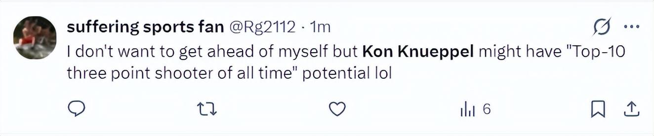美球迷:我不想亂誇,但克努佩爾或許具備“有史以來最出色的三分球投手”那樣的潛力。
