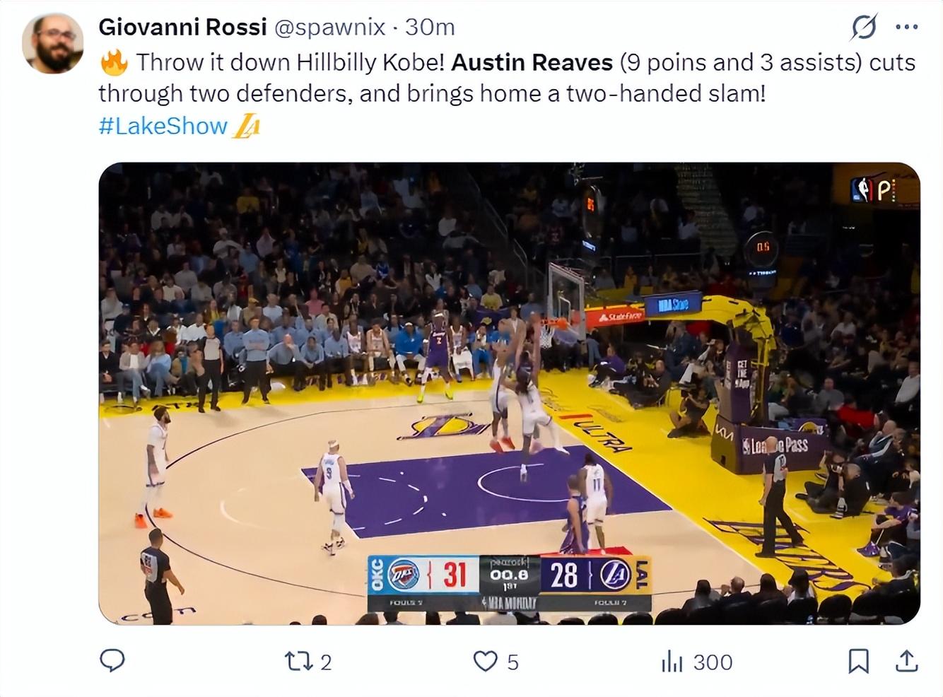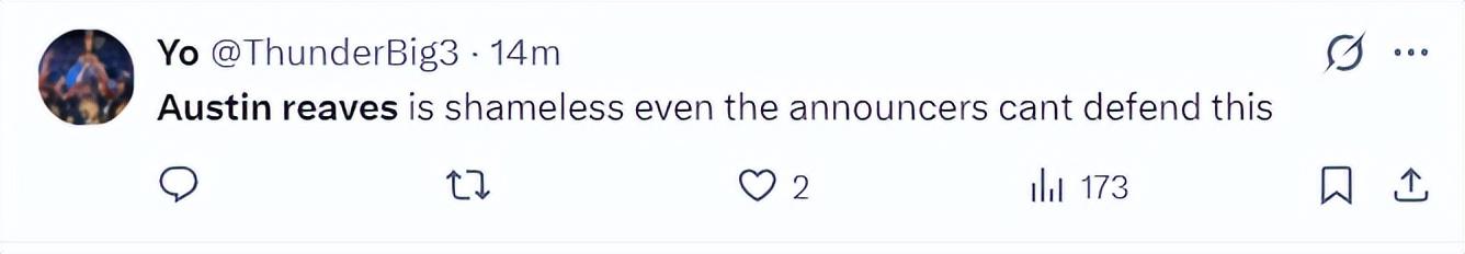 雷霆球迷:裏夫斯的造犯規簡直無恥至極,就連解說員都無法爲他辯解了。