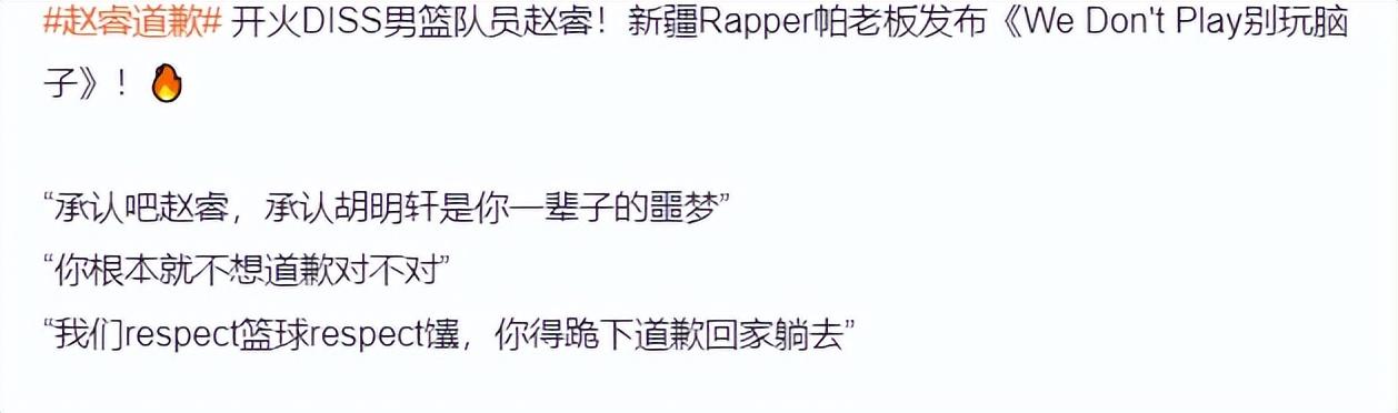 相信大家也知道,因爲趙睿的不當言論引發衆怒,很多Rapper專門寫歌批判他,最著名的兩首《We Don''t Play別玩腦子》、《睿哦謝特》,趙睿這個事件引發的憤怒久久沒有舒緩。