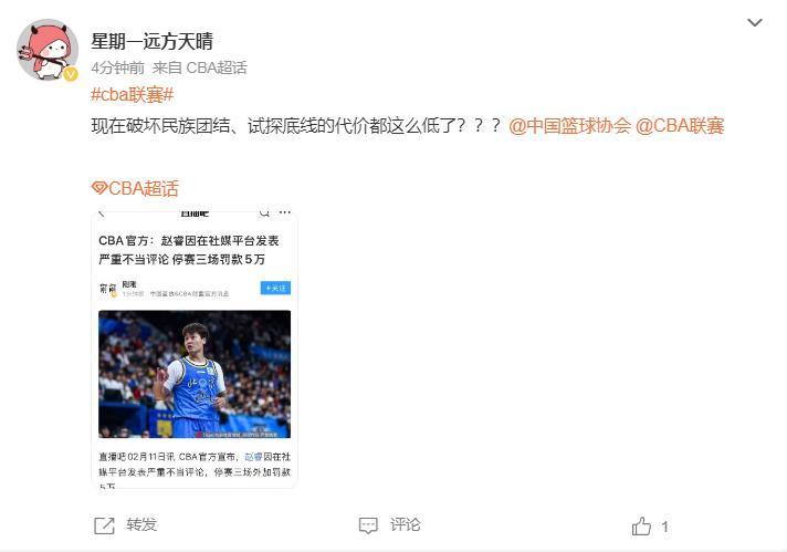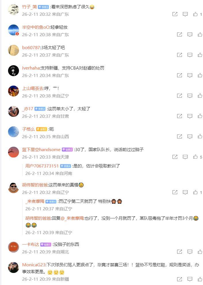 不少的球迷都在評論區表示這個處罰太輕了,輕拿輕放,對國家隊的比賽絲毫沒有影響,實際上該處罰他不能出戰中國男籃的比賽纔對。