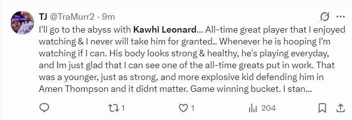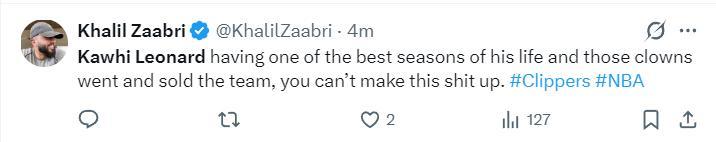 NBA記者Khalil Zaabri賽後寫道:卡哇伊打出了職業生涯最高光的一個賽季,但快船管理層那些蠢材卻送走了多位核心球員,這簡直太荒唐了。
