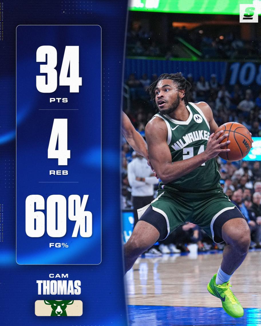 北京時間2月12日,沒有揚尼斯的雄鹿爆冷擊敗了魔術,這場比賽魔術隊是三巨頭齊整(班凱羅、貝恩、小瓦格納),而這支雄鹿隊的核心是新援卡梅隆-托馬斯,沒想到替補席的托馬斯一人勇冠三軍,他的表現比貝恩、小瓦、班凱羅都要出色。