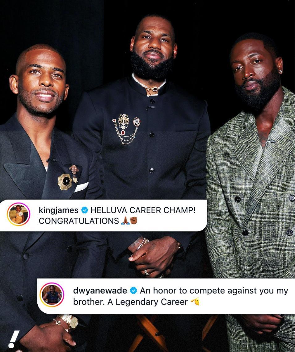 詹姆斯在保羅退役後發推:“無比偉大且成功的職業生涯,恭喜克里斯-保羅!”保羅是2005年進入NBA,他在聯盟打了21個賽季,四次一陣、五次二陣、七次一防、5次搶斷王、6次助攻王、12次全明星。