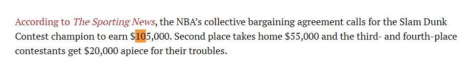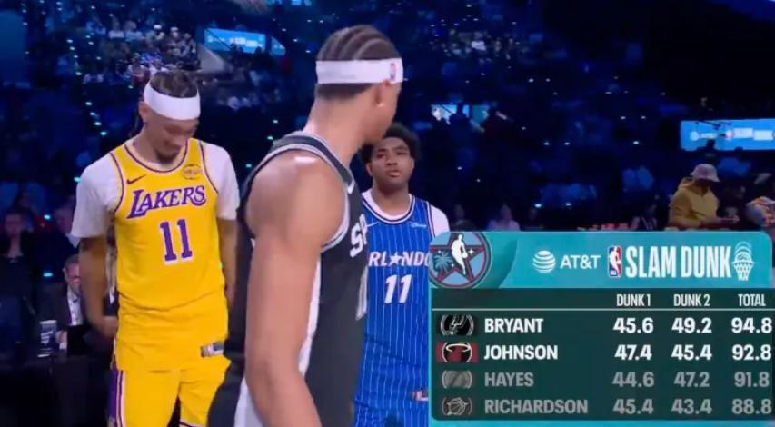 這場扣籃大賽的難看程度也堪稱是歷史級的,決賽第二扣,馬刺隊的新秀卡特-布萊恩特甚至沒有在規定時間內完成扣籃,約翰遜罰球線內一步的大風車就奪冠了,說實話這個動作錫安在實戰中都經常做。