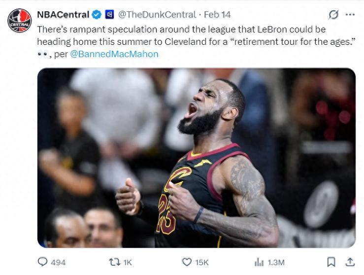 一天之前,ESPN記者布蘭德-麥克馬洪在播客節目中透露,聯盟內部廣泛猜測勒布朗-詹姆斯會在今夏重返克利夫蘭騎士隊,開啓一段‘史詩級的退役巡演’,但這些內幕還在推測階段並沒有官方確切的消息。