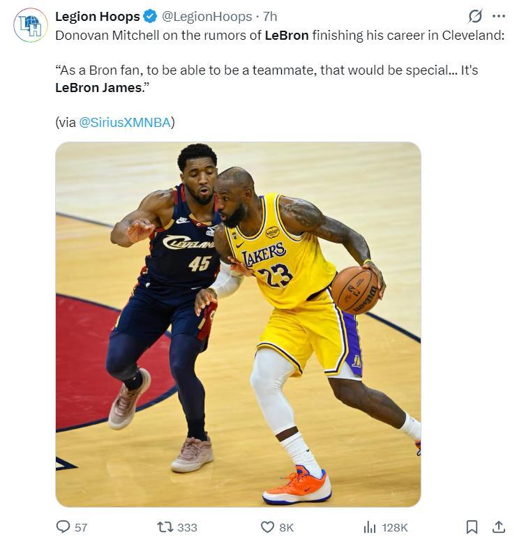 北京時間2月15日,米切爾在NBA官方的播客節目中透露,他願意跟勒布朗-詹姆斯成爲隊友。他說道:作爲一名勒布朗的球迷,如果可以跟他成爲隊友那會非常特別。無論未來發生什麼,那就發生吧,那不取決於我。