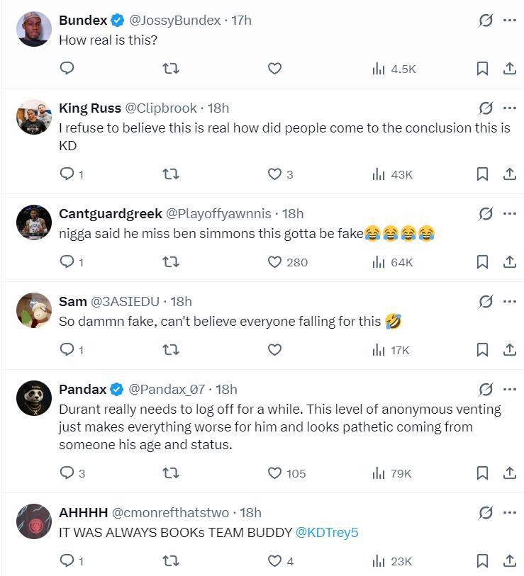 評論區的球迷們對這些言論多數是存疑的,但也有一些人覺得這像是杜蘭特的作風,希望杜蘭特本人回應來闢謠。