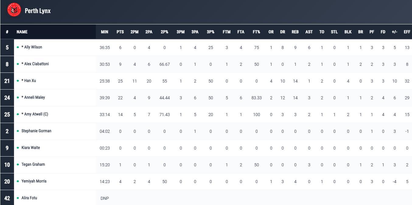 韓旭是本賽季WNBL的最佳防守球員+最佳二陣運動員,場均15.5分6.8籃板1.4助攻1搶斷1.93蓋帽1.63個三分,韓旭的到來讓山貓硬實力大增,她加盟山貓的16場比賽贏下其中14場,勝率高達87.5%。