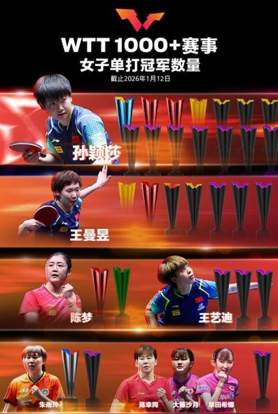 孫穎莎是現役唯一積分破萬的女選手,新加坡大滿貫的2000積分失效後她依舊有10125分,孫穎莎如果再度拿到這2000積分又會回到1.2萬分+,大家拭目以待。