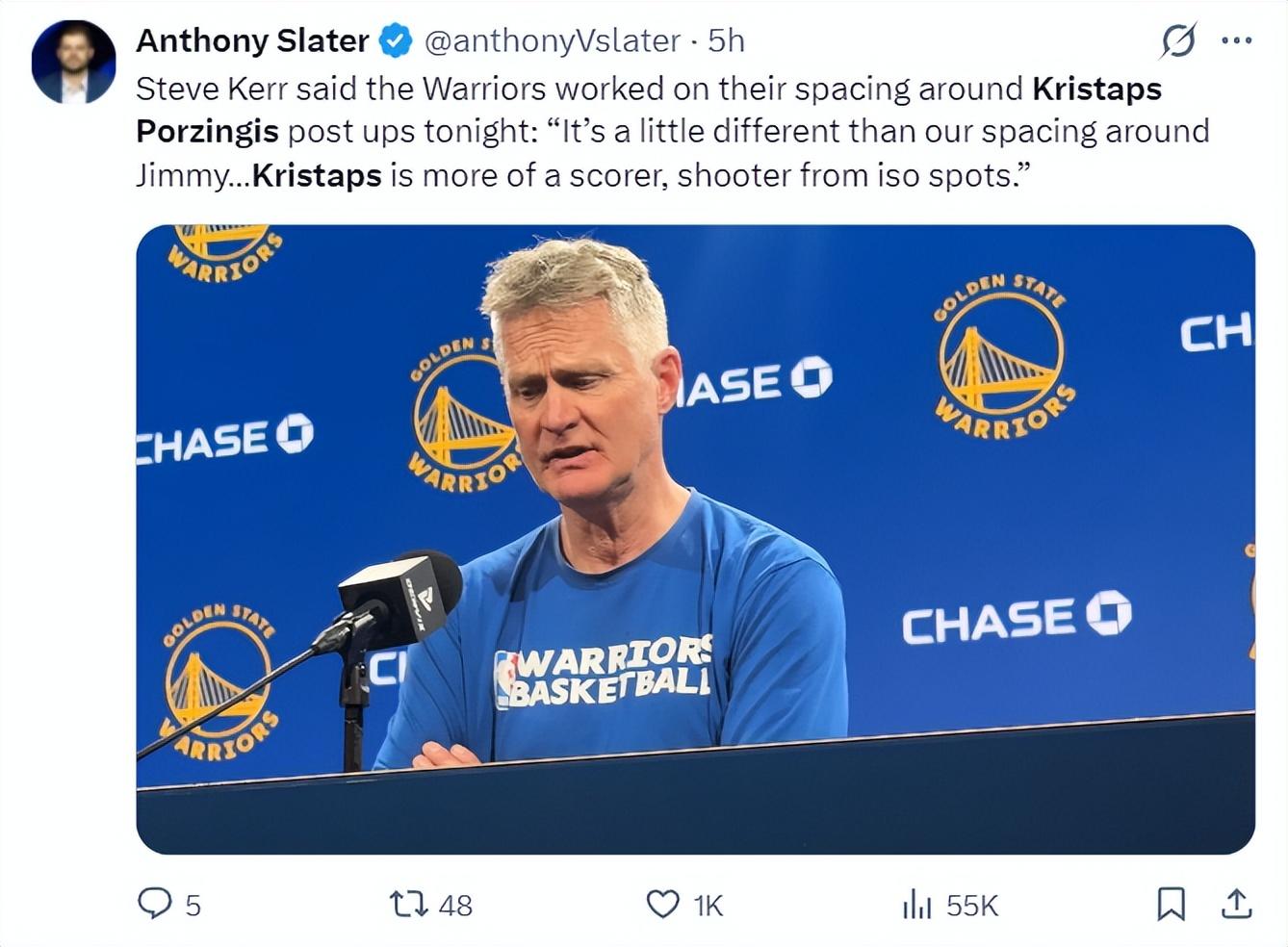 波爾津吉斯到來勇士後他可以打4-5號位,他是最頂尖的空間型內線之一,波斯特+波爾津吉斯的雙塔也有可能在接下來的比賽中顯露。