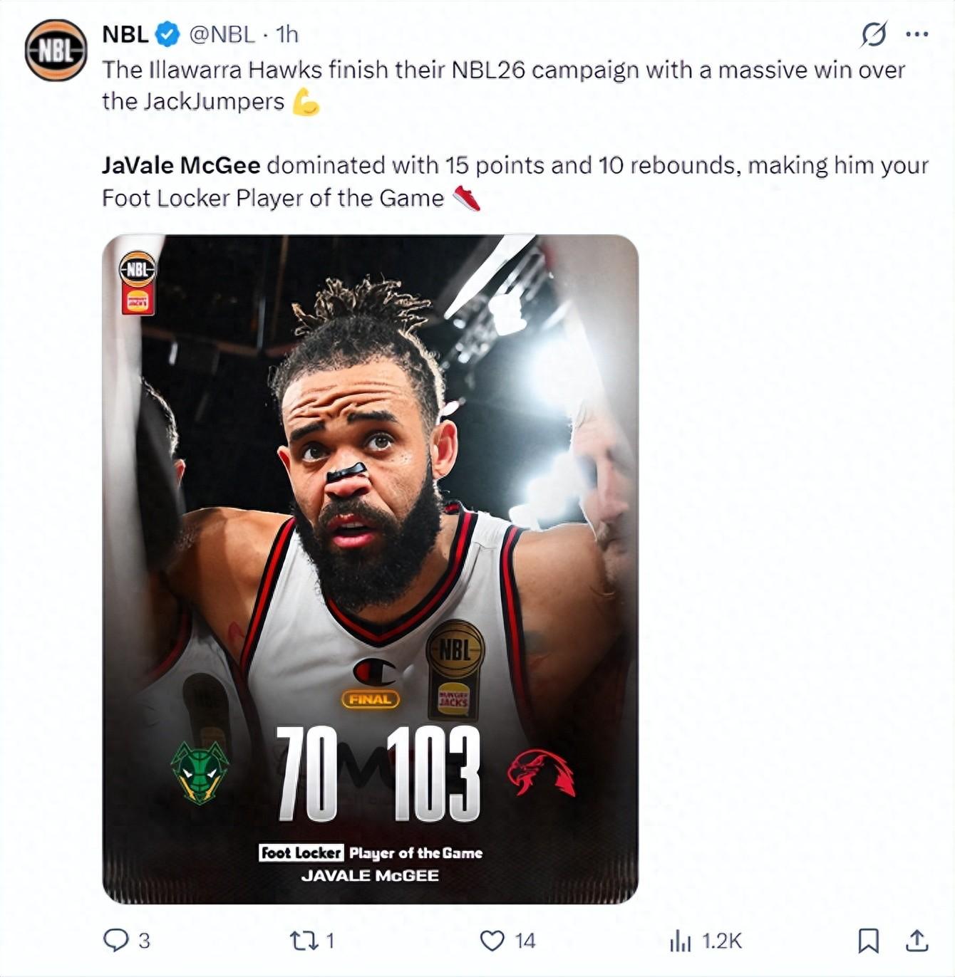 媒體人白曉籃寫道:以麥基NBL的競技狀態打CBA應該沒有問題,北京的護框、防守都會增加不少。
