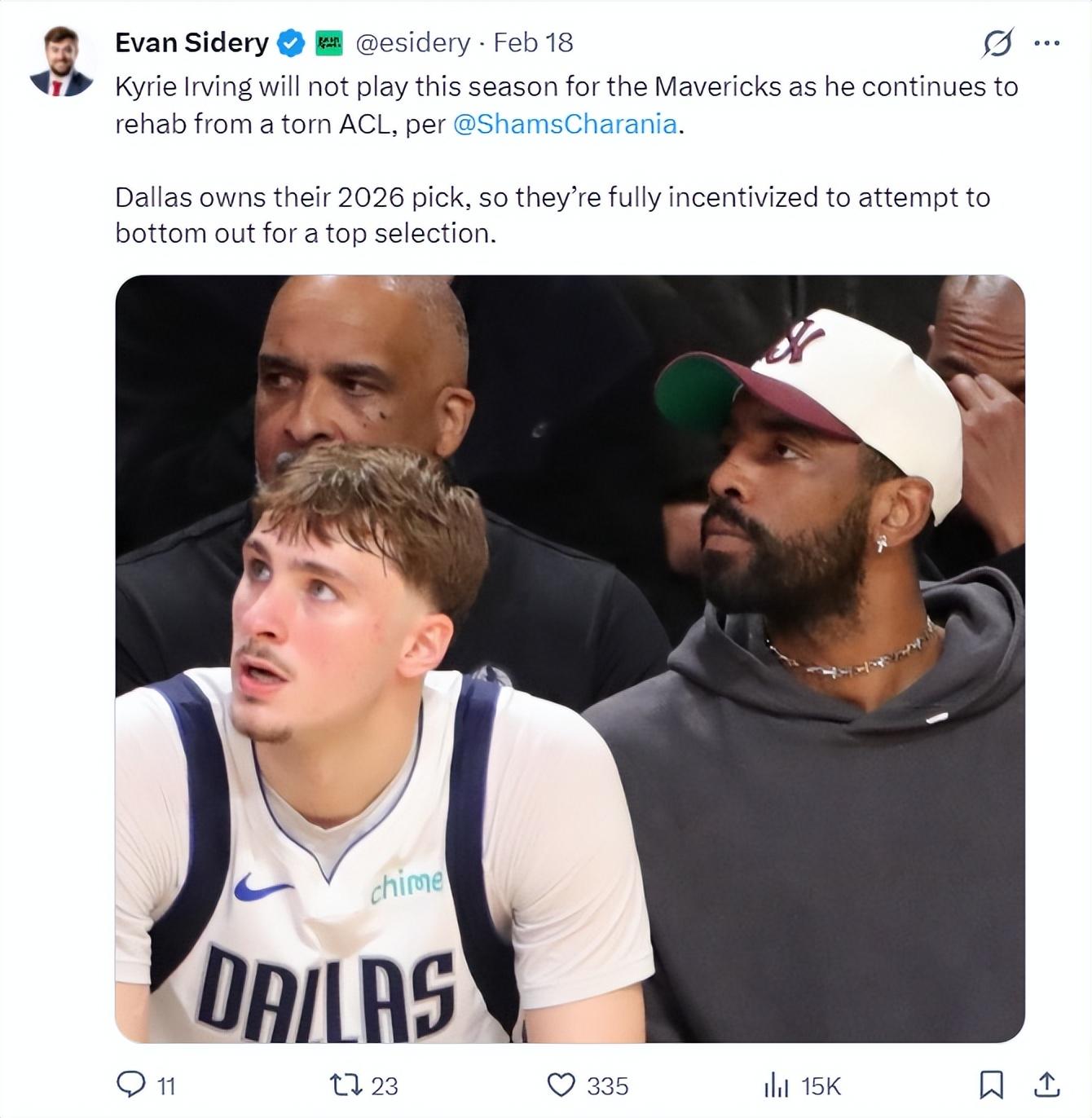 歐文在2025年三月份的一場比賽中遭遇了左膝ACL韌帶撕裂,目前歐文已經接近一年的康復期但仍未完全康復,而且獨行俠本賽季也並沒有競爭力。