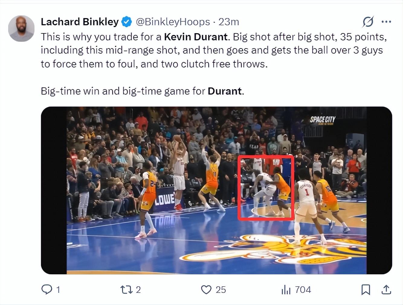 火箭隊記蘭德里-賓克利:這就是斯通換來KD的原因!一次次的精彩中距離,他拿到35分包括全場最關鍵的一個突破三人防守的急停,最後時刻接球造犯規兩罰全中。對於杜蘭特來說這是重大意義的勝利。